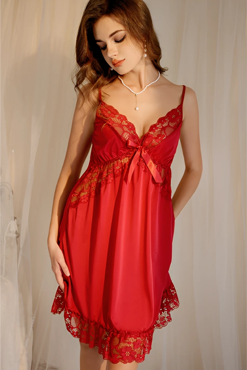 The lightweight material feels smooth on the skin and drapes naturally. Lace detailing along the neckline and hem enhances visual depth. However, the structure remains simple for easy size grading and mass production. The design supports plus size options, therefore expanding your retail reach. This style works well for boutiques, online lingerie stores, and B2B distributors focused on fast-moving pajama items.