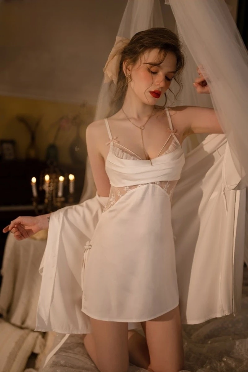 The nightgown features adjustable shoulder straps for flexible fitting across different body types. Lace panels improve breathability and add visual depth without affecting durability. The length sits above the knee, making it suitable for lingerie sets, bridal nightwear, and premium clubwear-inspired sleep collections. Fabric selection focuses on soft hand feel, color stability, and smooth drape.