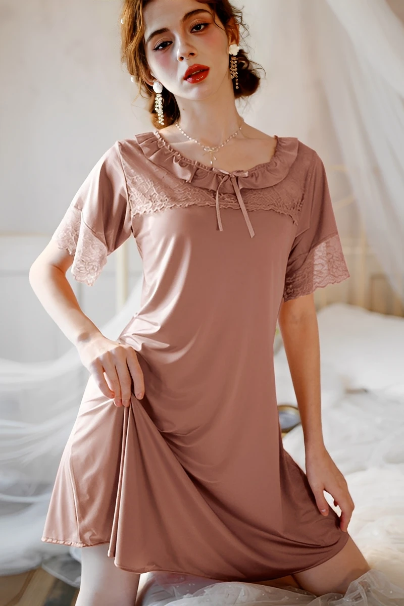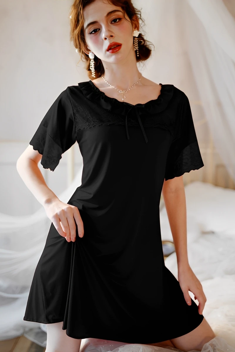 Bulk women’s sexy solid color lace pajamas featuring soft fabric, elegant lace trim, and a relaxed fit for B2B lingerie and sleepwear supply.